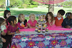 This year, for my birthday party, we decided to have my friends from school meet us at the park in Fort Mill. It was a lot of fun! Mommy and Daddy set up a covered area with decorations where we had pizza and special birthday cupcakes. I got so play on the playground with all of my school friends. We played on the swings, chased each other around, and went down the slides. It was great being able to have a party with all of my school friends!